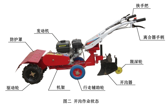 該機設想公道,布局松散,扶手把高度4檔調劑,擺布180度可調,操縱溫馨便利,功課部件插銷毗連,換裝便利快速。首要用于溫室大棚、果園、及丘陵狹窄地塊旋耕、鋤草和在已旋或已耕地塊上開溝功課。